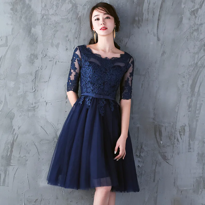 Robe De Soiree Navy Blue Lace Banquet Dresses Chinese Vintage Evening Dresses Elegant Short Vestidos De Festa Party Prom Dresses Evening Dresses Aliexpress