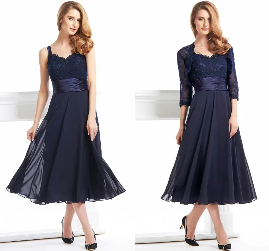 Vintage Dark Navy Mother Dress For Wedding With Jacket Tea Length Chiffon Lace Groom Party Gown 2022 From Donnaweddingdress12 79 57 Dhgate Com